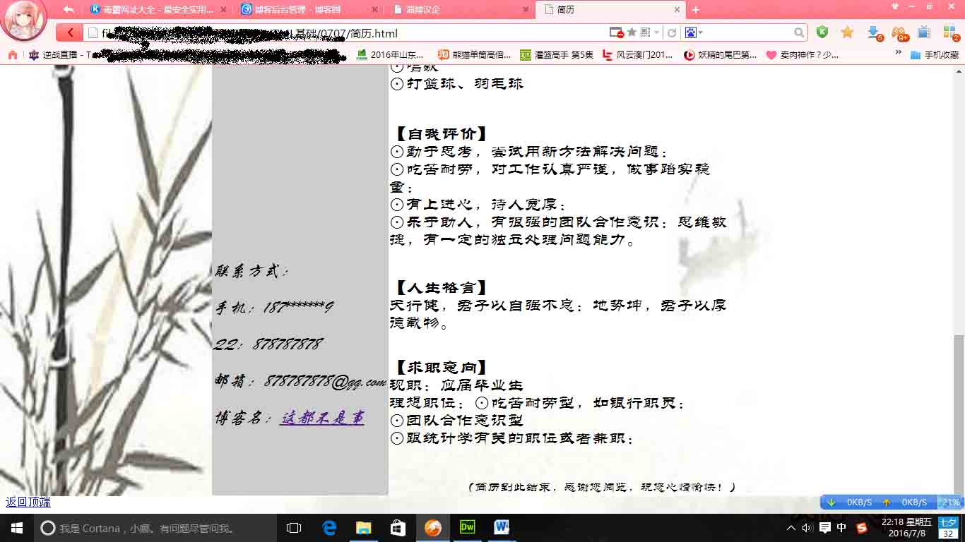 以上這篇HTML制作個人簡歷的簡單實現(xiàn)就是小編分享給大家的全部內容了,希望能給大家一個參考,也希望大家多多支持腳本之家。