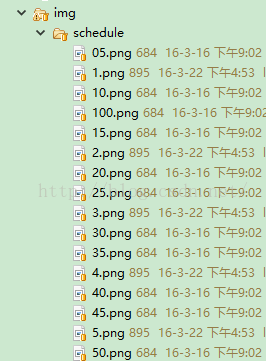 我有20張圖片,分別是5%,10%到100%,起初有個(gè)錯(cuò)誤的想法,那就寫20個(gè)if語(yǔ)句,,如果傳過(guò)來(lái)5,就顯示5%的圖片,如果是100,就顯示100%的圖片。這是及其錯(cuò)誤的做法。