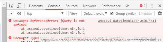 就會(huì)發(fā)現(xiàn)是因?yàn)閖query在時(shí)間插件js的后面引入而引起的