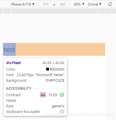 從上述兩張圖我們可以看出,當(dāng)我們改變手機(jī)的型號(hào)后(改變完成后記得要刷新哦),視口的大小也發(fā)生了改變,對(duì)于test元素的寬高也發(fā)生了改變,此時(shí)我們就能夠進(jìn)行進(jìn)行移動(dòng)端適配了。
