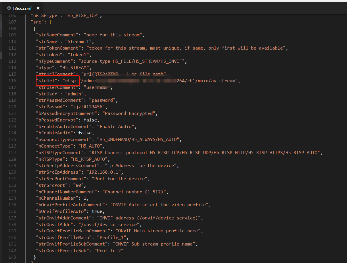 發(fā)流服務(wù)通過(guò)RTSP地址從攝像頭采集視頻,在代碼中可以通過(guò)配置文件進(jìn)行配置。
