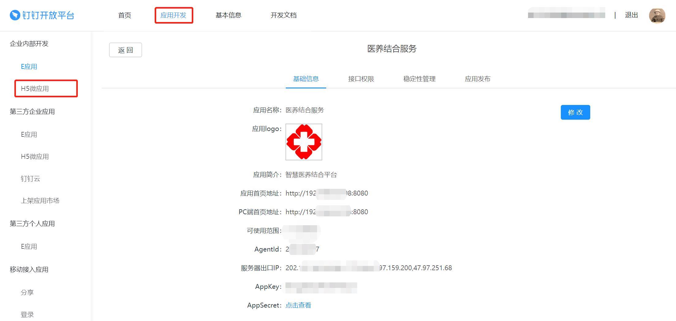登入釘釘開放平臺(tái)(https://open-dev.dingtalk.com/),進(jìn)入“應(yīng)用開發(fā)”->企業(yè)內(nèi)部開發(fā)H5微應(yīng)用->創(chuàng)建應(yīng)用,并填寫基本信息和配置開發(fā)信息