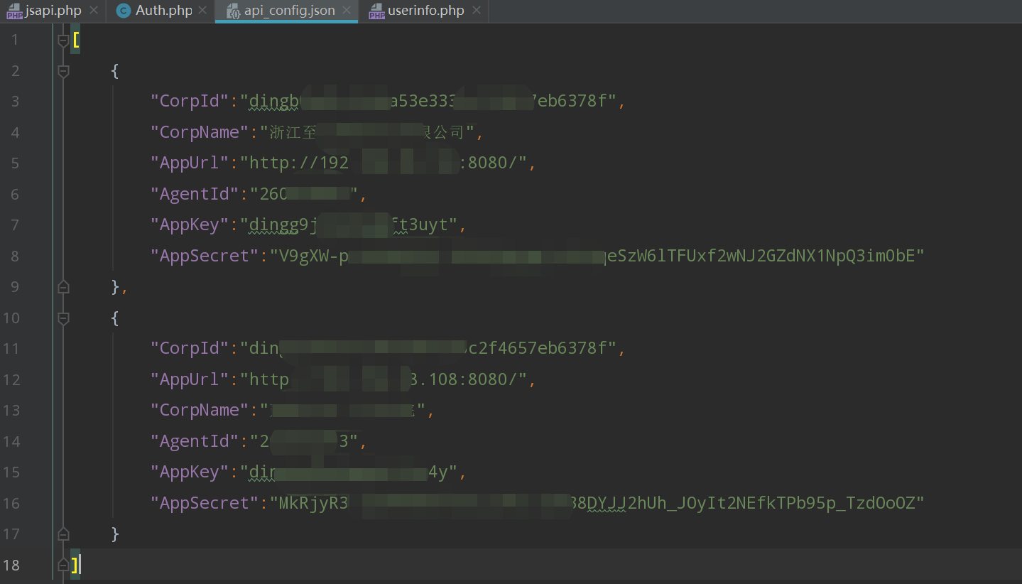 * 根據(jù)企業(yè)ID corpid 從api_config.json配置文件中找到 企業(yè)對(duì)應(yīng)的信息,并返回企業(yè)應(yīng)用開發(fā)信息