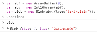 3、創(chuàng)建一個裝填A(yù)rrayBufferView對象的Blob對象(ArrayBufferView可基于ArrayBuffer創(chuàng)建,返回值是一個類數(shù)組。如下:創(chuàng)建一個8字節(jié)的ArrayBuffer,在其上創(chuàng)建一個每個數(shù)組元素為2字節(jié)的“視圖”)