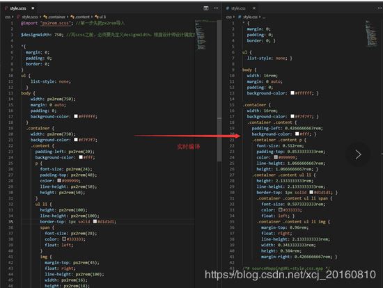 同時打開style.css,可以看到,style.scss文件上的內(nèi)容會實時編譯到style.css'