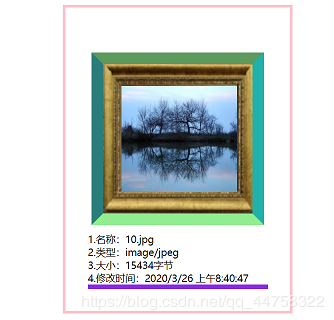 files[0].size + "字節(jié)" + "<br>4.修改時(shí)間:" + lastModifiedStr + "</li>" + "<hr/>";