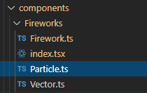其中Vector表示一個坐標,Particle表示一個煙花的亮點,F(xiàn)irewor表示煙花未炸開時持續(xù)上升的亮點。index.tsx就是組件了,繪制了canvas,并執(zhí)行了動畫。