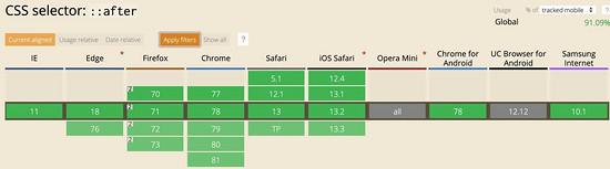 最后看一下兼容性如何,主要是偽元素、 transform:scale 和 min-device-pixel-ratio 這幾個(gè)關(guān)鍵詞的兼容性