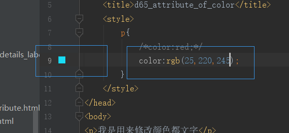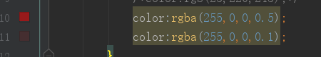 注:紅綠藍(lán)三原色,格式:rgb(255,0,0)代表紅色,里面的數(shù)字分別代表紅綠藍(lán)三原色各自的亮度,webstorm很智能,可以寫(xiě)代碼時(shí)直接在旁邊顯示顏色。