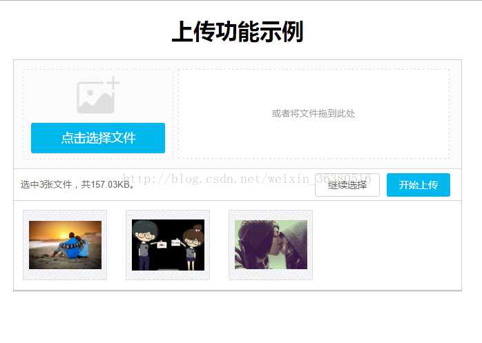 在做圖片上傳時發(fā)現(xiàn)一個蠻好用的控件,支持多張圖片同時上傳,可以點(diǎn)擊選擇圖片,也可以將圖片拖拽到上傳框直接上傳,方便,好用,接口也簡單,基本可以直接放到項(xiàng)目里使用。