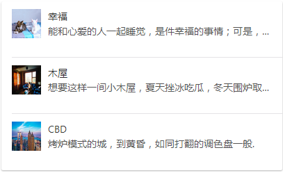 圖文列表繼承自列表組件,主要添加了.mui-media、.mui-media-object、.mui-media-body、.mui-pull-left/right幾個類,如下為示例代碼
