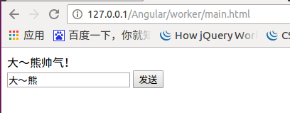當(dāng)我在文本框輸入“大~熊”點(diǎn)擊發(fā)送按鈕就會(huì)出現(xiàn)如下效果