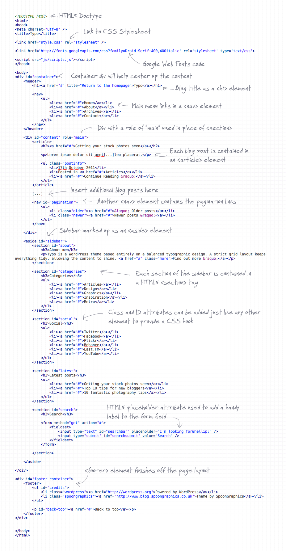 完整的源代碼和CSS3部分參見原文http://line25.com/tutorials/create-a-typography-based-blog-layout-in-html5