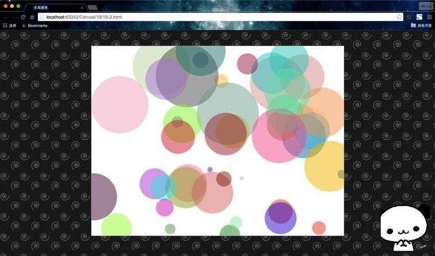 和上面的代碼基本沒變化,就是把rgb(r, g, b)變成了rgba(r, g, b, a)而已,a的值也是0~1,0表示完全透明,1則是完全不透明(所以alpha的值實際上是“不透明度”)。