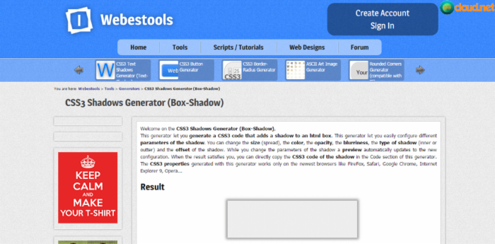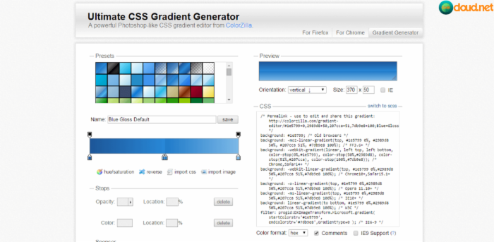 你可以很容易在網(wǎng)上找到這個(gè)生成器。一旦你開始用這個(gè)生成器,我相信你一定會(huì)完全依賴它的。有了它,你可以做很多動(dòng)畫、自定義字體、文本滾動(dòng)、盒子模型陰影、圓角邊框、文字陰影、過渡、漸變等等方面的效果。