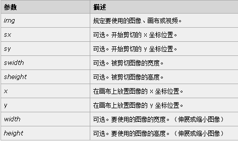 *JS語(yǔ)法2:在畫(huà)布上定位圖像,并規(guī)定圖像的寬度和高度:context.drawImage(img,x,y,width,height);