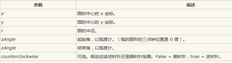 *arc() 方法創(chuàng)建弧/曲線(用于創(chuàng)建圓或部分圓):context.arc(x,y,r,sAngle,eAngle,counterclockwise);