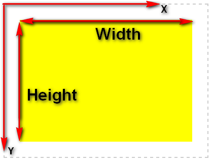 這里使用了一個方法——fillRect()從字面意思也能知道這個就是填充一個矩形,這里的參數(shù)值得說明一下fillRect(X,Y,Width,Height),這個和數(shù)學(xué)里的坐標(biāo)是不一樣的,具體請看