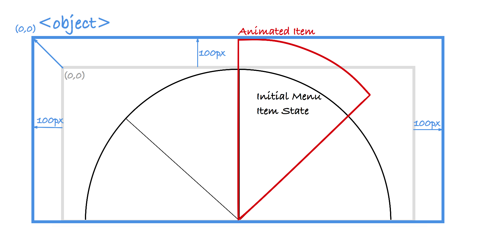 上方的示意圖展示了菜單項放大到溢出SVG視窗邊界時的效果。灰色邊框表示SVG視窗的邊框(即<object>元素)。