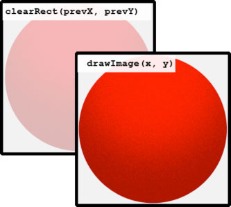 render函數(shù)的更新引入了一個常規(guī)drawImage之前發(fā)生的clearRect調(diào)用。對于該步驟,對象需要存儲前一個位置。圖 6顯示了對象針對前一個位置所采取的步驟。