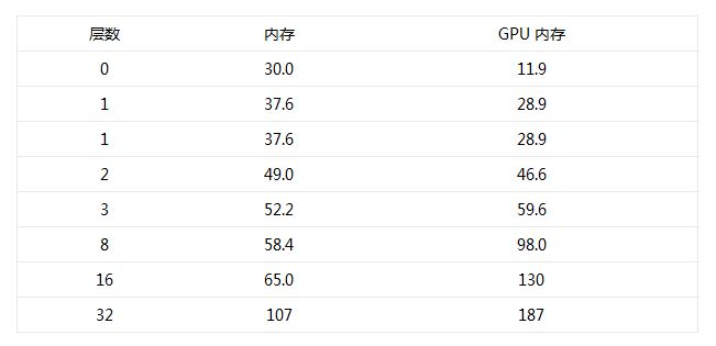 表 1. 畫布層的內(nèi)存開銷