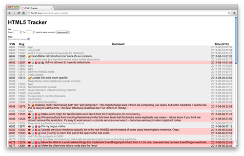 想了解HTML5的最新動(dòng)向嗎?使用HTML5 Tracker吧,它可以跟蹤HTML5最新修訂信息。