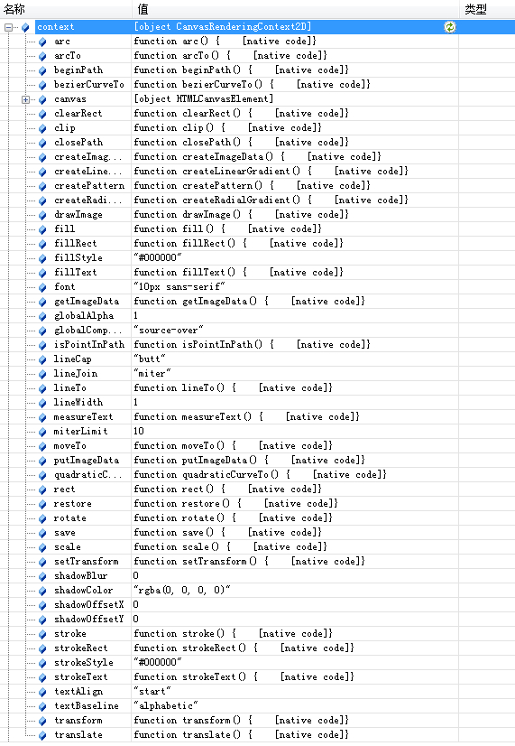 在開發(fā)者控制臺(tái)里可以看到這個(gè)drawing2d的屬性及方法: