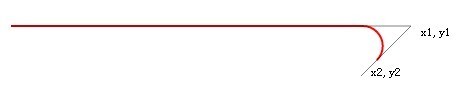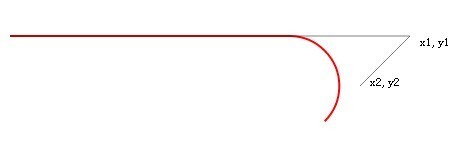 從圖中我們可以看到,(x2,y2)這個(gè)點(diǎn)的坐標(biāo)可以無限變化,只要他始終是切線上的一個(gè)點(diǎn),那么在圓的半徑不變的情況下,arcTo畫出的圖形不會有任何變化。這點(diǎn)需要特別注意。
