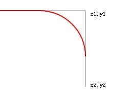 變量說明:x0,y0是起點(diǎn)坐標(biāo),x1,y1是第一個(gè)點(diǎn)坐標(biāo),x2,y2就是第二個(gè)點(diǎn)坐標(biāo)。其中l(wèi)ineTo畫的直線是半透明的1px黑線,arcTo畫的線條是2px的紅線。