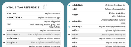 另外一份HTML 5標(biāo)簽速查表,PDF格式。