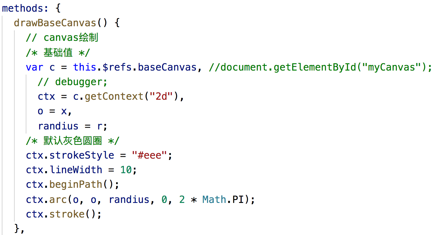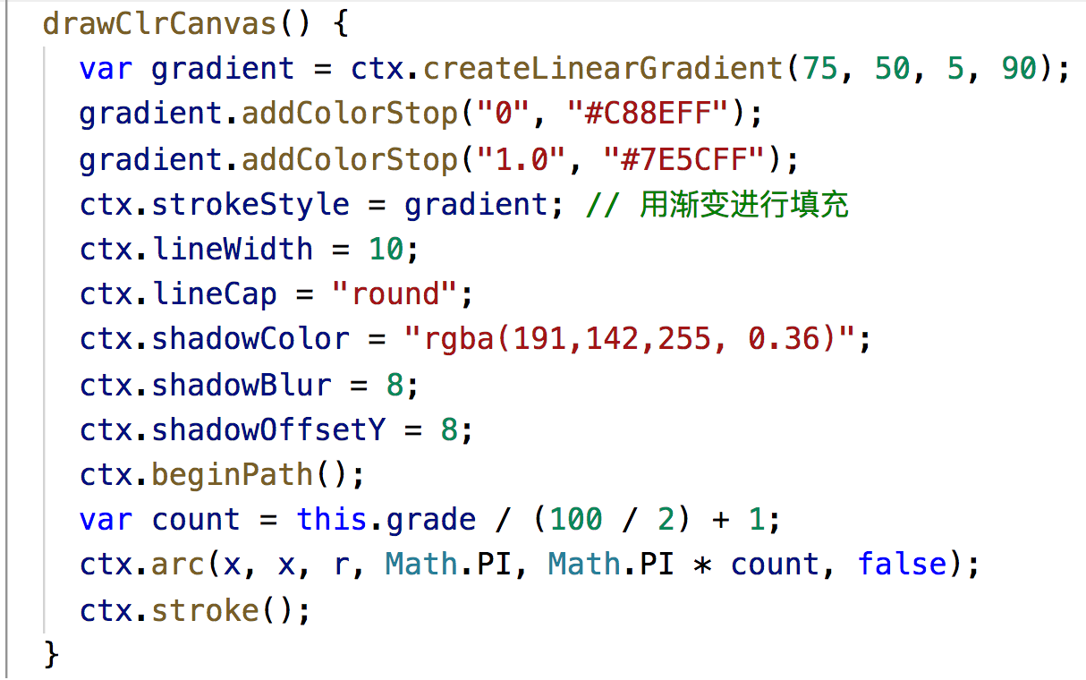 只有draoClrCanvas方法中,canvas圓形的繪制時(shí),arc的參數(shù)里關(guān)于開(kāi)始值、結(jié)束值的設(shè)置。