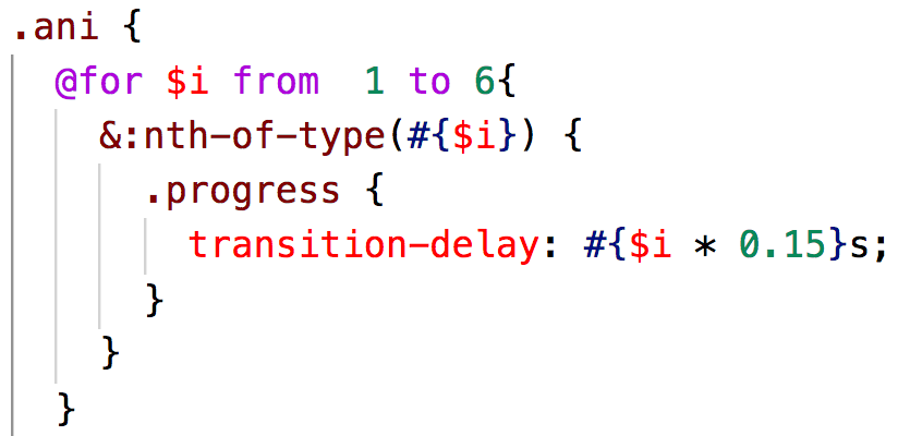 而ani類(lèi)名下,progress的transition-delay實(shí)現(xiàn)了其高度錯(cuò)開(kāi)遞增效果。