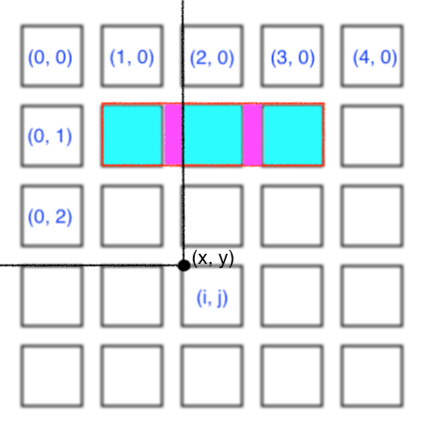 格子是左上角的坐標(biāo)是(0, 0),向右是橫坐標(biāo)增加,向下是縱坐標(biāo)增加。這個方向和Canvas相同。