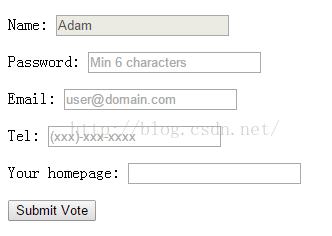 4)placeholder:指定關于所需數(shù)據(jù)類型的提示;