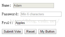 type屬性設置為submit、reset和button則會生成類似button元素那樣的按鈕。
