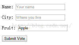 <p><label for="city">City: <input placeholder="Where you live" id="city" name="city"/></label></p>