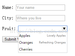 <p><label for="fave">Fruit: <input list="fruitlist" id="fave" name="fave"/></label></p>