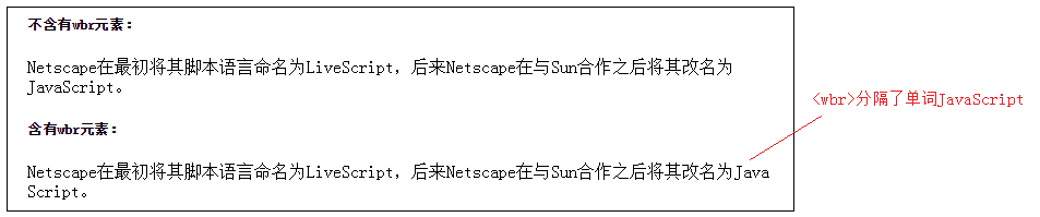 <wbr>:標(biāo)注一個(gè)單詞在后續(xù)空間無(wú)法全部容下時(shí)進(jìn)行換行