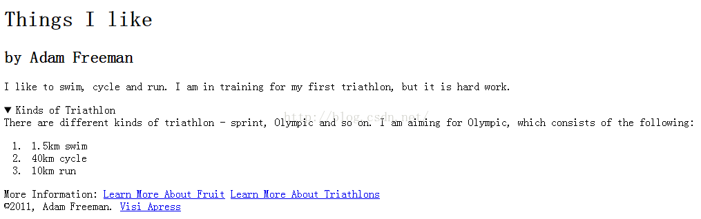 本例定義了3個header元素。body元素的header元素作為整個文檔的首部。