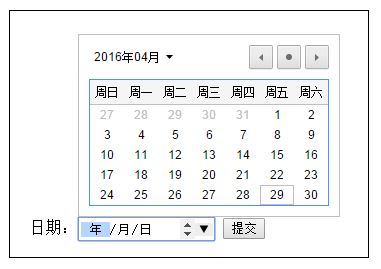 說明:顯示一個日期控件,提供年月日的選擇或自行輸入。