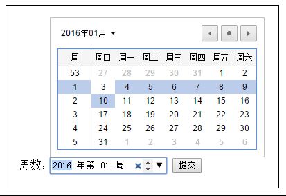 說明:顯示一個可選擇年數(shù)、周數(shù)的日歷控件。