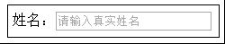 <p>姓名:<input type="text" placeholder="請輸入真實姓名" /></p>