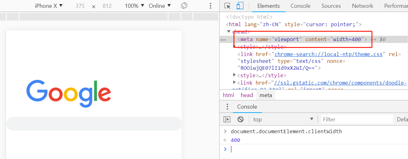 可以看到,默認的布局視口寬度為 980px。如果要顯式設置布局視口,可以使用 HTML 中的 meta 標簽: