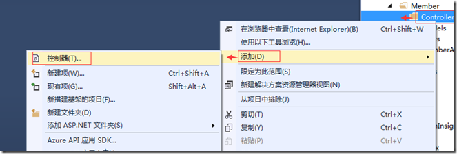 Ninesky.Web->Areas->Member->Controllers【右鍵】-> 添加->區(qū)域 。