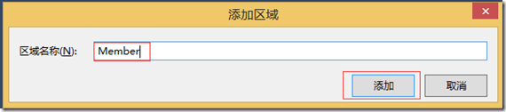 在彈出的添加區(qū)域?qū)υ捒蜉斎雲(yún)^(qū)域名稱:Member,完成區(qū)域添加。
