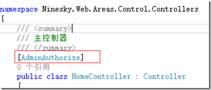 在控制器中引用Ninesky.Core、Ninesky.Core.General和Ninesky.Web.Areas.Control.Models命名空間。