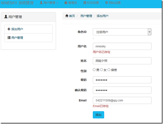 if (userManager.HasEmail(userViewModel.Email)) ModelState.AddModelError("Email", "Email已存在");