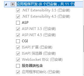 應(yīng)用程序開發(fā)選項(xiàng)中,請(qǐng)確保選擇.net 3.5,.net 4.5,ISAPI擴(kuò)展。