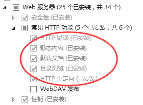 打開web服務(wù)器(IIS)選項(xiàng)。選擇常見http功能。