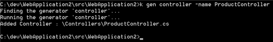 ASP.NET 5 beta2中增加了一個(gè)新特性,可以通過(guò)K命令生成MVC的代碼,比如:k gen controller -name HomeController。